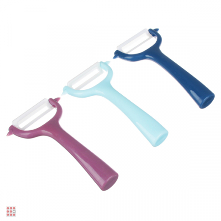 Керамическая овощечистка с лезвием из диоксида циркония. Она удобна и легка в применении. Хорошо справляется со всеми видами овощей и фруктов.