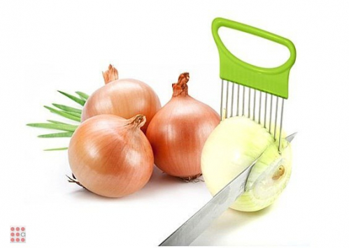 Разрежьте лук на 2 половинки. Для дальнейшей нарезки вставьте держатель по середине и режьте между зубцами. Можно мыть в посудомоечной машине.