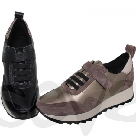 Colores: TAUPE · NEGRO Numeracion: 35,36,37,38,39,40,41 - Altura del tacon / cuna (cm.): 3.5- Material exterior-Corte: Piel y sintetico.- Plantilla: Piel.- Material interior-Forro: Textil.- Piso-Suela: Sintetico.