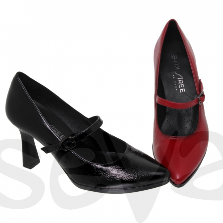 Colores: ROJO · NEGRO Numeracion: 35,36,37,38,39,40,41 - Altura del tacon / cuna (cm.): 8.5- Material exterior-Corte : Piel.- Piso-Suela: Sintetico.- Plantilla: Piel.- Material interior-Forro: Textil.- Plantilla: Almohadillada.
