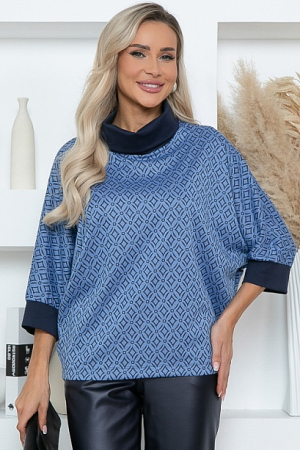 * Джемпер из жаккардового трикотажного полотна свободного силуэта с цельнокроеными рукавами и контрастной отделкой.Ворот-хомут и манжеты рукавов из трикотажного вискозного джерси.