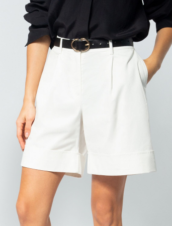 Шорты в стиле сафари выполнены из тонкого хлопкового твила. Модель с посадкой на талии дополнена боковыми карманами. Благодаря наличию эластана в составе, изделие хорошей формоустойчивостью и сохранит свой безупречный внешний вид в течении долгого времени. Подходит для любой фигуры.