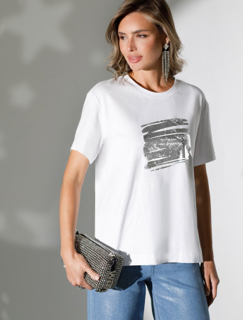Эта эффектная футболка станет отличным выбором на праздник, подчеркивая образ сияющей и уверенной в себе девушки или женщины. Если вы ищете комфортный и одновременно привлекательный наряд для особых моментов, эта футболка станет надежным решением, подчеркивающим вашу индивидуальность и вкус.