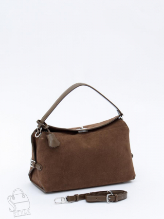 Модель с клапаном, выполнена из замши. Декорирована ремнями по бокам. Дополнена серебристой фурнитурой. Данная модель закрывается на клапан. Носится в руке или на плече. В комплекте имеется встроенная ручка и плечевой ремень с регулировкой длины. Каркас полужесткий.