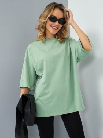Женская футболка F5, Oversize fit (свободный силуэт), круглый вырез горловины, короткий цельнокроеный рукав. Выполнена из классического трикотажного полотна.