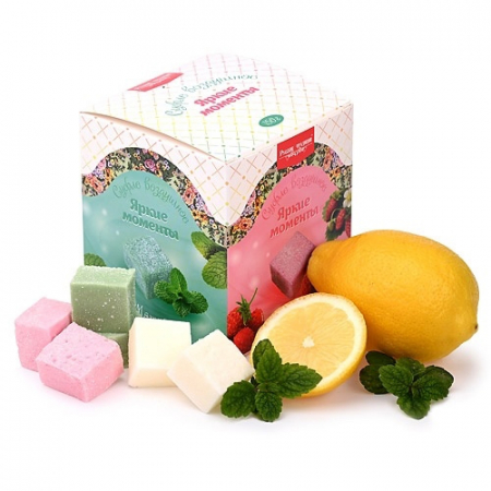 Вкусовые качества и структура воздушного суфле схожи с зефиром. По сути оно таковым не является, потому как состоит из глюкозно-фруктозного сиропа, желатина, кукурузного крахмала. Чтобы разнообразить вкусы, мы добавляем натуральные ароматизаторы (земляника, мята, лимон).