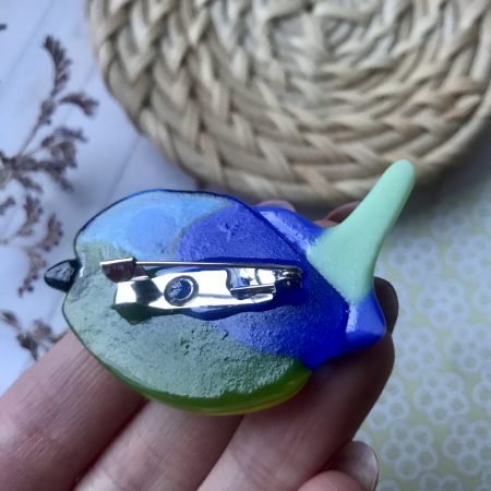 Брошь выполнена из художественного стекла в технике фьюзинг.