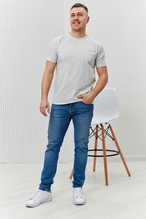 Футболка мужская из кулирки с лайкрой с круглым вырезом. Горловина обработана бейкой из основной ткани, рукав подшит. Футболка очень комфортная, прекрасно подойдет как для дома, так и для отдыха и прогулок.