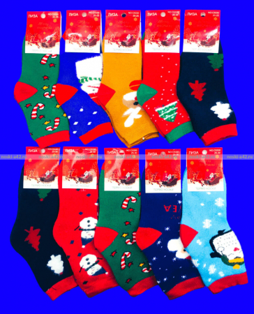 Лиза термоноски детские внутри махра Новогодние - в упаковке 10 пар одного размера разного цвета, разных рисунков.