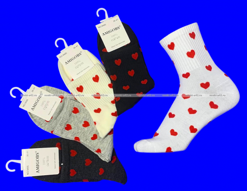 AMIGOBS носки женские с принтом "Сердечки" арт. 9495 (арт. 2811)