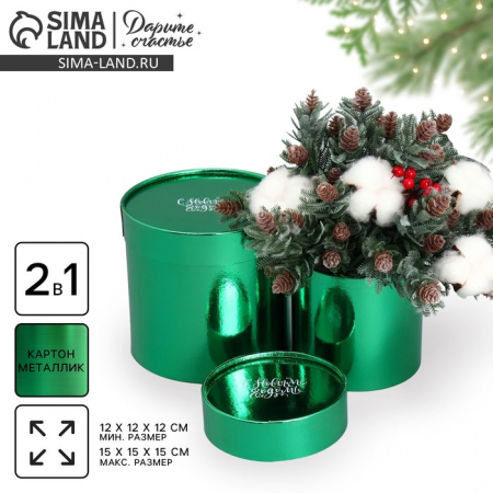 Набор новогодних подарочных коробок 2 в 1 круглые «С Новым годом», зелёный металлик, 12?12, 15?15 см (арт. 9875847)