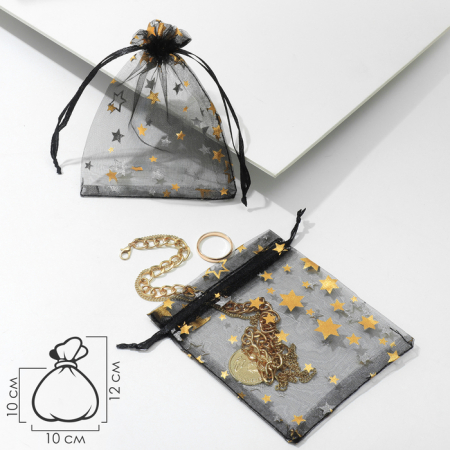Мешочек подарочный «Звёздный дождь», 10?12, цвет чёрный с золотом (арт. 4621394)