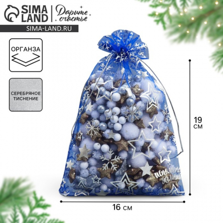 Мешочек подарочный новогодний органза «Исполнения желаний», 16?24 см ± 1.5 см (арт. 3512391)