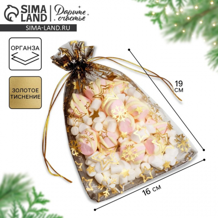 Мешочек подарочный новогодний органза «Исполнения желаний», 16?24 см ± 1.5 см (арт. 5046463)