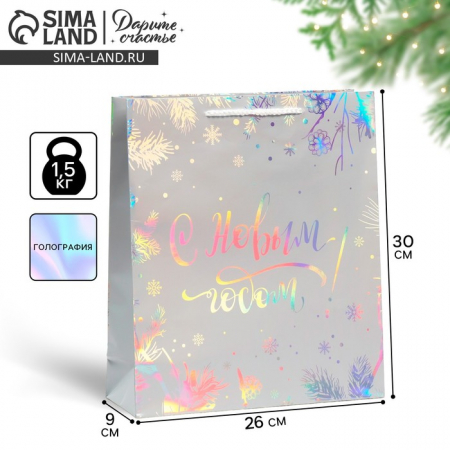 Пакет подарочный новогодний голографический «Яркого Нового Года», 26?30?9 см (арт. 7728755)