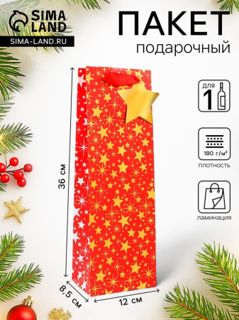 Пакет подарочный новогодний под бутылку, упаковка «Звездочки», 12?36?8.5 см (арт. 10544283)