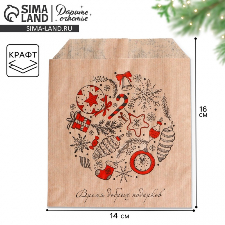 Конверт для сладостей новогодний, крафт, «Время добрых подарков», 16.5 ? 13.5 см (арт. 5160702)