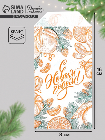 Пакет фасовочный новогодний крафтовый «Сочные мандарины», 8?16 см, без окна (арт. 10864642)