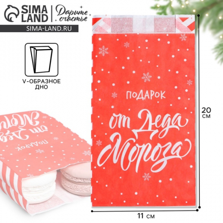 Пакет бумажный фасовочный новогодний, крафт, V-образное дно «От Деда Мороза», 20?10?7 см (арт. 5156270)