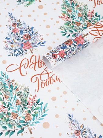 Бумага упаковочная новогодняя крафт белый «С Новым годом!», 50?70 см (арт. 9842420)