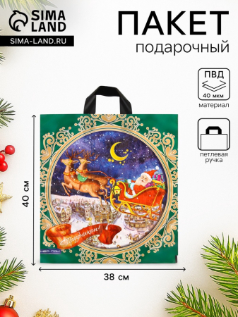 Пакет подарочный новогодний «Волшебного Нового года», полиэтиленовый с петлевой ручкой 38?40 см (арт. 5297860)