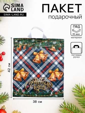 Пакет подарочный «Новогодний звон», полиэтиленовый с петлевой ручкой, 42?38 см (арт. 9827664)