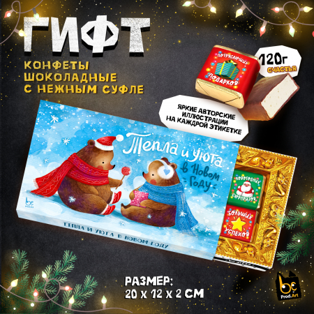 Оригинальный новогодний подарок! Коробки с милыми надписями и авторскими иллюстрациями станут идеальным подарком для любимых, а вкуснейшие конфеты в ярких новогодних обёртках удивят своим восхитительным вкусом! Под конфетами мы спрятали вкладыш с крутыми дизайнерскими репликами известных произведений искусств.