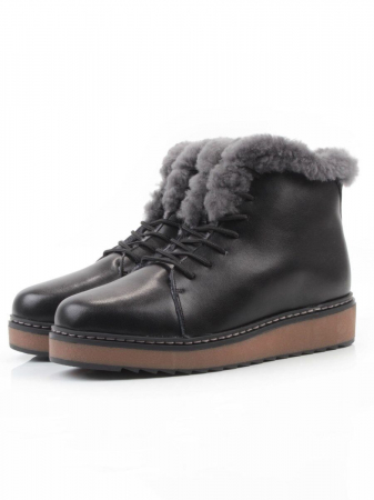 Ботинки зимние женские (натуральная кожа, 100% шерсть, натуральный мех)