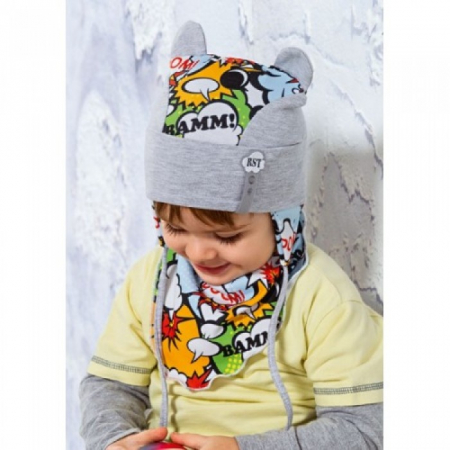 Нежный трикотаж, удобная модель на завязках,яркая расцветка, веселые ушки понравятся мальчишкам и девочкам.