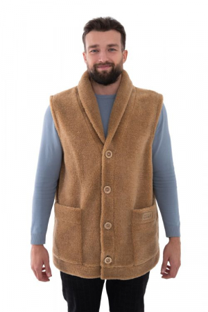 В таблице размеров указаны замеры готового изделия. Рассчитано на свободу облегания 14-18 см., Мужской жилет меховой с воротником на пуговицах из натуральной шерсти. Высота ворса 7 мм, без подкладки. Мягкий, теплый, комфортный, прямого силуэта. Жилет можно использовать как верхний и средний слой одежды, для улицы, дома и офиса!, Удобные накладные карманы, застежка пуговицы, качественный пошив, хорошие лекала и современные расцветки сделают ваш образ максимально комфортным и стильным., Наши изделия созданы из новейшего, уникального, разработанного специально для нас, материала на основе овечьей шерсти. Невероятно мягкий, легкий, пластичный он подарит тепло и комфорт своей обладательнице. Стильный фасон отвечает всем современным тенденциям моды!, Все наши лекала уникальны и не имеют аналогов, разработаны на собственном швейном производстве фабрики WOOLLAMB, это обеспечивает отличную посадку и комфортное использование для любой фигуры., Примерная температура носки от -10 до +20 градусов, Благодаря высокому содержанию ланолина, шерсть обладает высокими оздоравливающими и согревающими свойствами, благоприятно влияет на весь организм в целом! Одежда из натуральной шерсти подарит легкость, комфорт и сухое тепло рожденное природой!, Уход за изделиями максимально прост, стирка ручная со средствами для шерсти, или сухая химчистка, при необходимости можно отпарить паровым утюгом.