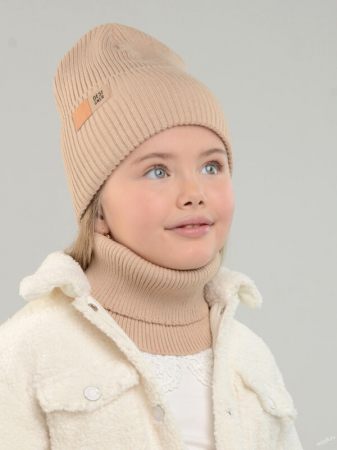 Дополнение: Комплект шапка+шарф-труба. Шапка на подкладке, с отворотом, удлиненной формы. Декор- шеврон