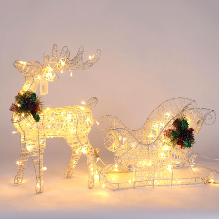 Новогодняя декорация олень с санями с подсветкой 60 см белый (арт. К130-872)