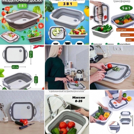 Удобная многофункциональная разделочная доска с дуршлагом / 3 в 1 / с отверстием для слива