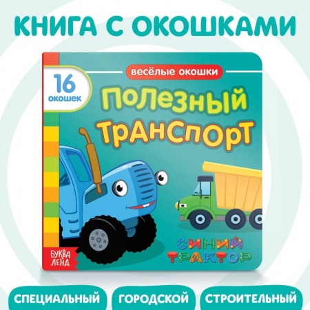 Книжка с окошками «Полезный транспорт с Синим трактором» — это красочное издание для детей от 3 лет, которое знакомит малышей с разнообразием полезной техники через увлекательные задания и яркие иллюстрации. Твёрдый переплёт и 16 интерактивных окошек делают её надёжной и интересной для многократного использования.