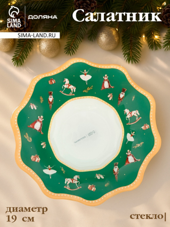 Салатник Доляна «Сказочные истории», 400 мл, d=19, h=3.7 см, стекло, белый, зелёный (арт. 10872402)