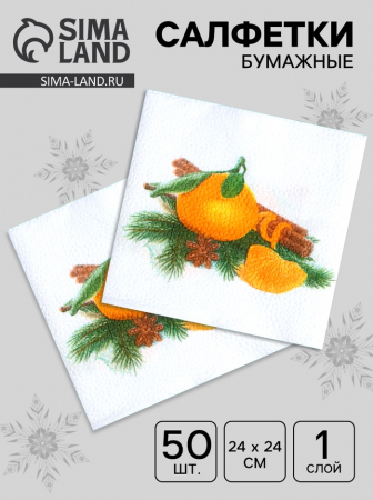 Салфетки новогодние бумажные «Мандарин», 24?24 см, 50 шт. (арт. 9202224)