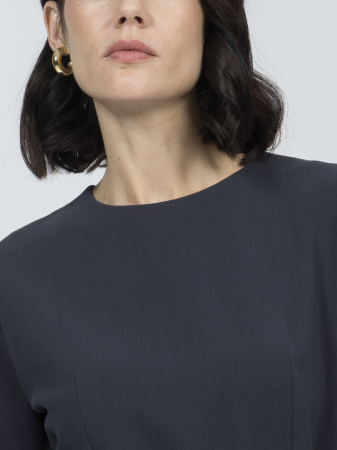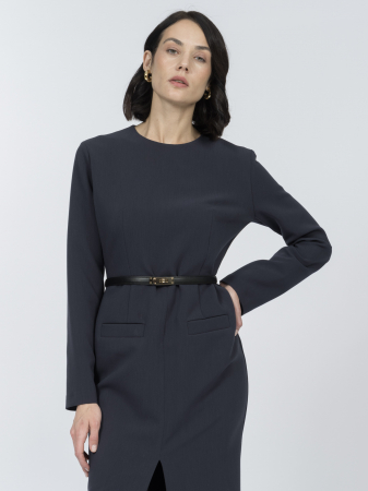 Платье силуэтного кроя из эластичной костюмной ткани станет основой множества осенних и зимних образов. Оно мягко тянется и удобно сидит по фигуре. Модель с круглым вырезом и длинными рукавами подчеркивает достоинства фигуры благодаря вертикальным вытачкам, пересекающим линию отреза по талии.
