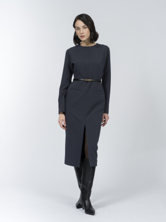 Эффектный разрез спереди придает уверенность шагу, а декоративные карманы с листочками привносят ноту классики. Застёжка на потайную молнию сзади обеспечивает аккуратный вид. Сдержанный дизайн делает платье универсальным.