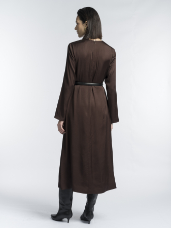 Платье прямого кроя в шоколадном оттенке - для тех, кто ценит лаконичность и комфорт. Эффектная длина, аккуратный круглый вырез, втачные рукава создают утонченный силуэт, анатомически верные нагрудные вытачки обеспечивают правильную посадку.