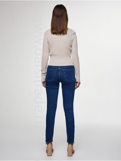 Классические джинсы skinny с высокой посадкой, подчеркивающей талию, созданы для адептов комфорта и лаконичности. Застежка на пуговицу и молнию, скрытую планкой, шлевки для ремня. Модель с пятью карманами из мягкого eco-friendly денима премиального качества