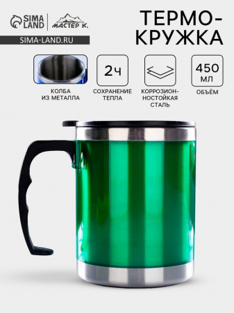 Термокружка "Мастер К" 450 мл (0.45 л) это яркое решение для любителей чая, кофе, травяных, ягодных и фруктовых заварок. Она позволяет не только согреться горячим кофе, чаем, матчей, какао, но и идеально подходит для прохладных напитков: чай со льдом, смузи или айс-кофе, которые вы можете взять с собой куда угодно.