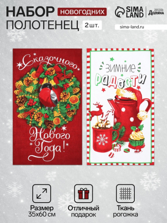 Набор кухонных полотенец Доляна «Зимние радости» 35?60 см-2 шт., 100% хлопок (арт. 6988427)