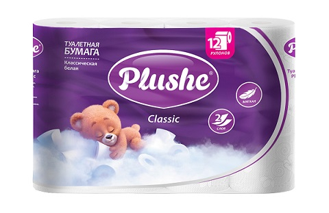 Туалетная бумага Plushe Classic 12 рулонов*18 метров, 2 слоя (арт. 73277)