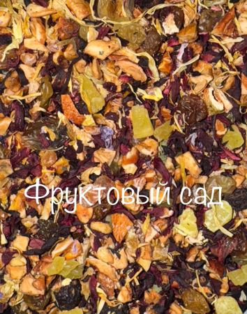 гибискус, кусочки яблока, вишня, цукаты ананаса, сушеный виноград, боярышник