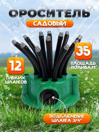 Спринклерный ороситель поможет равномерно поливать лужайку либо огород. Гибкие шланги позволят в точности направить дождеватель для равномерного полива. С этим оросителем Вы забудете о проблемах полива, так-как его можно направить на все 360 градусов. Разбрызгиватель,так-же можно использовать для охлаждения крыши дома, что придаст свежесть в Вашем дворе. Ороситель сделан из прочного Abs пластика, что придает хорошую долговечность.