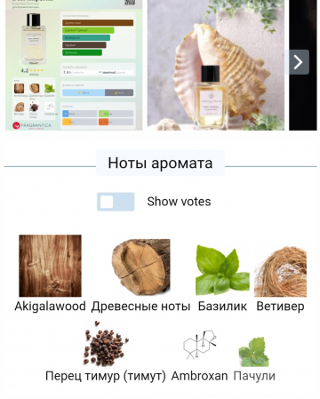Композиция аромата включает ноты: Тайский базилик, Сычуаньский перец из Непала, Гаитянский ветивер, Georgywood, Petalia, Пачули из Индонезии, Akigalawood и Ambrofix.