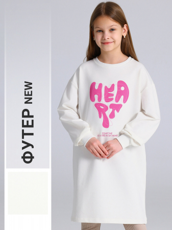 Платье для девочки из футера - тонкого хлопкового полотна с содержанием полиэстера. Изделие свободного силуэта, со спущенными плечами и длинными рукавами. Полочка украшена печатью. Уход: только машинная стирка (руками не стирать!) при температуре 40 градусов, без предварительного замачивания. Изделия с печатью и декором перед стиркой необходимо вывернуть на изнаночную сторону.