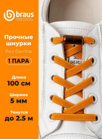 Шнурки BRAUS (Браус) ЭЛАСТИЧНЫЕ с металлической застежкой позволяют надевать обувь за несколько секунд, надежно держат обувь на ноге, не развязываются и придают современный вид Вашей любимой обуви.