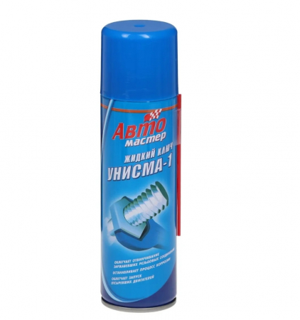 Жидкий гаечный ключ Авто мастер Унисма-1, 225 мл, аэрозоль. Унисма-1 — это незаменимое средство для отвинчивания заржавевших резьбовых соединений, способствующее удалению ржавчины, останавливающее и предотвращающее процесс коррозии. Средство облегчит запуск отсыревших двигателей, защитит детали электрооборудования от окисления, смажет трущиеся поверхности.