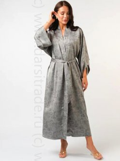 Удлиненный халат классический, свободного кроя без застежек, со съемным поясом для фиксации. Свободного кроя втачные рукава в форме "тюльпанчика". Принт - пастельный оливковый и бежевый адрас, придает восточный колорит и нежность всему. Для халата идеально подойдет сорочка арт. 250136